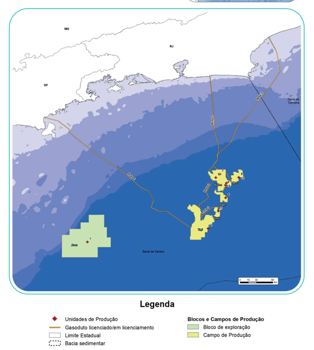 Para o Projeto Etapa 4, está prevista a instalação e a operação de 10 unidades de produção, localizadas em distância mínima de 178 km da costa do litoral dos estados de São Paulo e Rio de Janeiro, em águas com profundidade acima de 1.880 m. Essas unidades serão responsáveis por produzir petróleo e gás em 10 projetos de Desenvolvimento da Produção (DPs). Na Figura 1, são apresentados os 10 Projetos de DP previstos para o Projeto Etapa 4 e os blocos/campos onde estão localizados.
