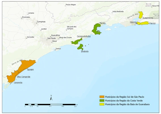 O projeto estimulará e apoiará a organização do debate e de ações com a população dos municípios mais afetados pelo recebimento das rendas do petróleo. O PEA Rendas é realizado em fases e esta primeira fase, que foi iniciada em junho de 2021 após a contratação da FIA (Fundação Instituto de Administração da USP) por licitação, vai até agosto de 2025. A equipe executora está em nove municípios que se distribuem ao longo da costa da Bacia de Santos: Maricá, Niterói, Guapimirim e Paraty, no Estado do Rio de Janeiro, e Caraguatatuba, Ilhabela, Iguape, Ilha Comprida e Cananéia, no Estado de São Paulo. Veja na figura a seguir a localização desses municípios.