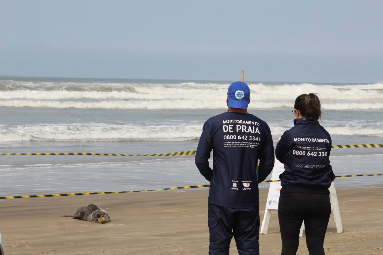 Ao encontrar um animal na praia, a orientação é acionar as equipes do PMP-BS pelo 0800 e evitar o contato direto com o animal, seja por curiosidade ou tentativa de ajuda.